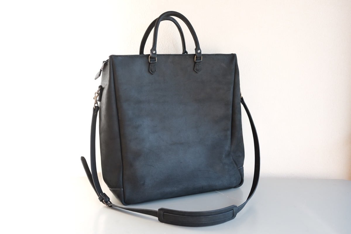 大容量のネイビーの牛革を使ったビジネスバッグ
