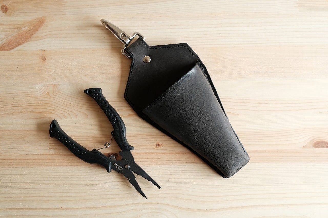 その第一弾として、この釣り用プライヤーの牛ヌメ革のケースです。