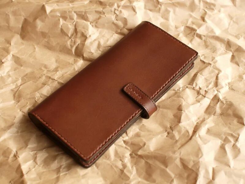 使っている革は全て牛革で、内側に使っているものは厚さ1mmのものになり、外側の深めの赤茶っぽい革は2mm厚の栃木レザーを使いました。